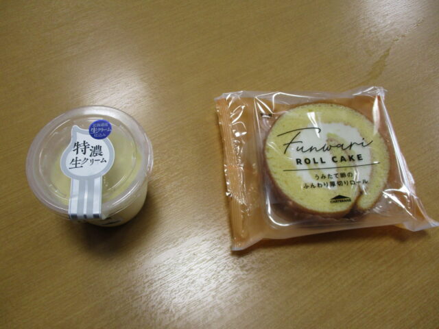 ロールケーキとプリンの2種類をご用意し、入所者様の状況に合わせて提供させて頂きました。