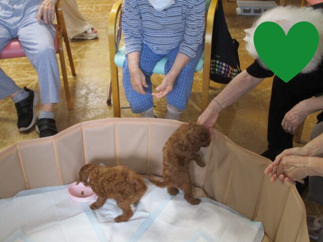 今日は、特養入所者様にも子犬たちとの交流を楽しんでいただくことができました。