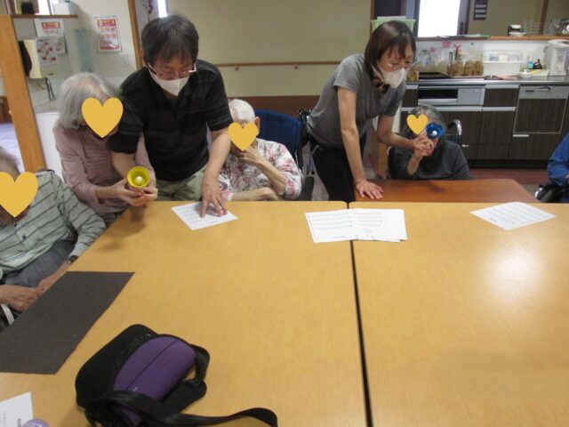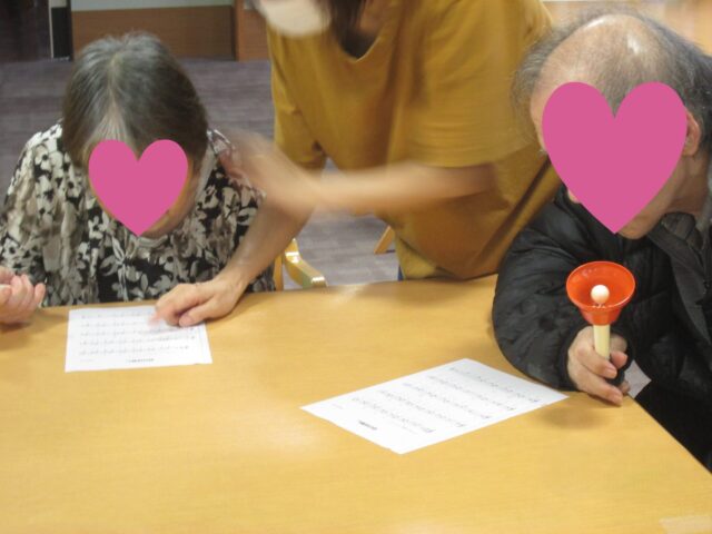 5F入所者様たちがハンドベル🔔に挑戦されました。