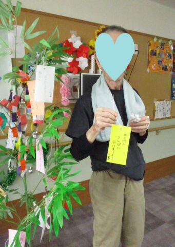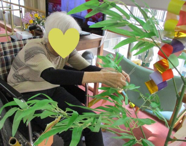 短冊に願い事を書いたり、できる方には笹に飾り付けをしていただきました。