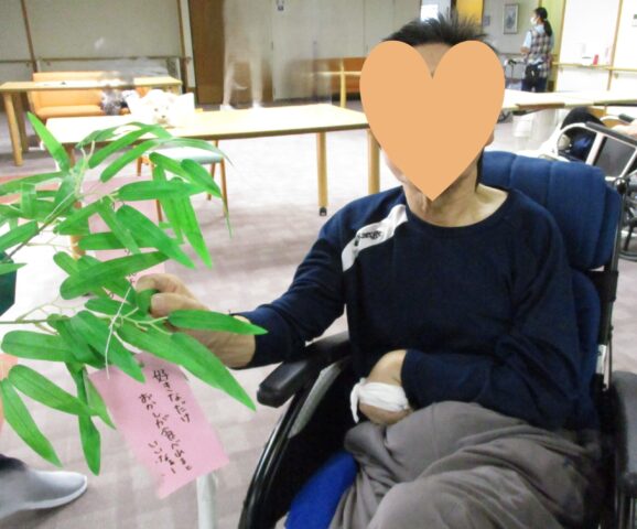 短冊に願い事を書いたり、できる方には笹に飾り付けをしていただきました。