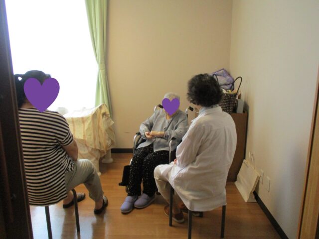 部屋の中でお話をされたり、季節の良い時には、一緒に敷地内を散歩される方もいらっしゃいます。
