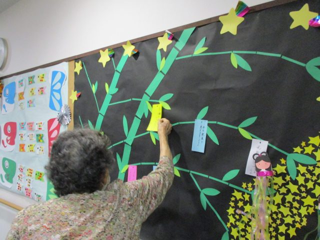 デイサービスの皆さんが、七夕の飾り付けをしていらっしゃいました。