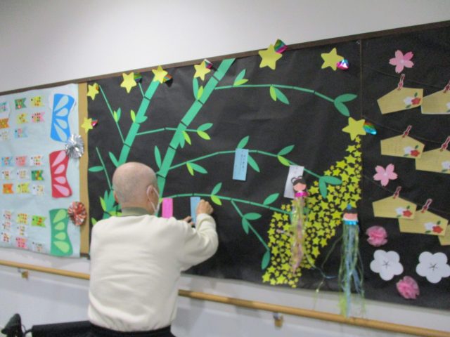 デイサービスの皆さんが、七夕の飾り付けをしていらっしゃいました。